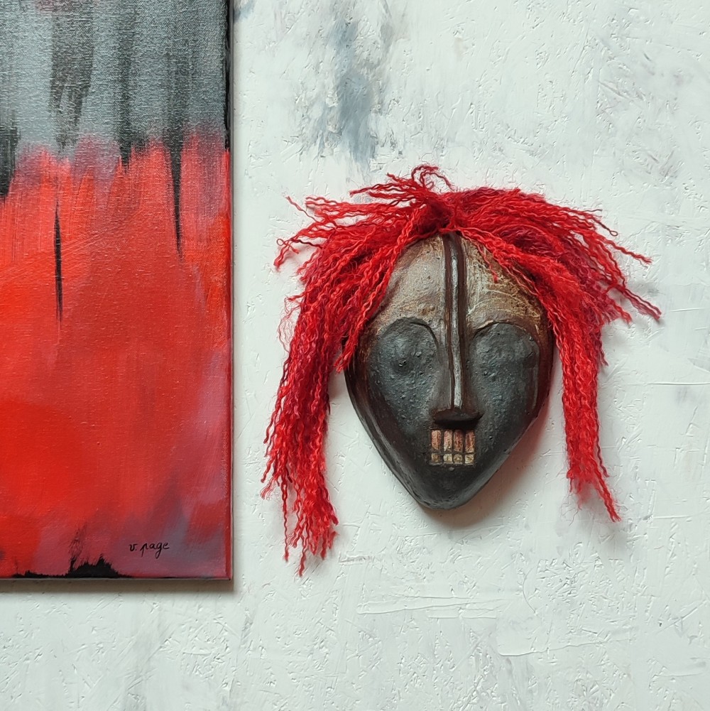 La terre noire lui confère une profondeur intense et une vibration brute, tandis que les détails du visage révèlent le geste artisanal et l’unicité de la pièce. Conçu pour être accroché au mur, ce masque devient un véritable élément de caractère dans un intérieur, apportant une atmosphère à la fois artistique et contemplative.